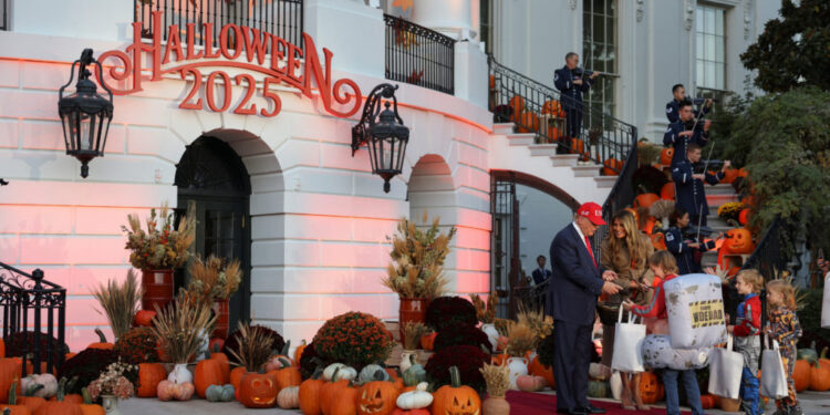 A trick-or-treating child in costume rides past as President Donald Trump and first lady Melania Trump host a Halloween event at the White House in Washington, D.C., Oct. 30, 2025. Photo by Kylie Cooper/Reuters