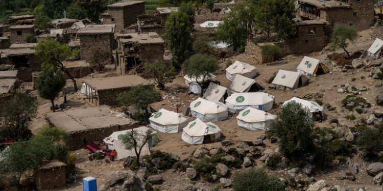 “We are living in tent camps now,” the 55-year-old farmer said, speaking at his cousin’s shop in the nearby village of Noorgal. “Our houses were old, and none were left standing … They were all destroyed by big boulders falling from the mountain during the earthquake.”