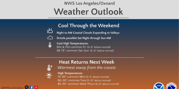 Southern California is set for a big weekend cooldown with a chance of light showers, but the below-average temperatures won’t last long.