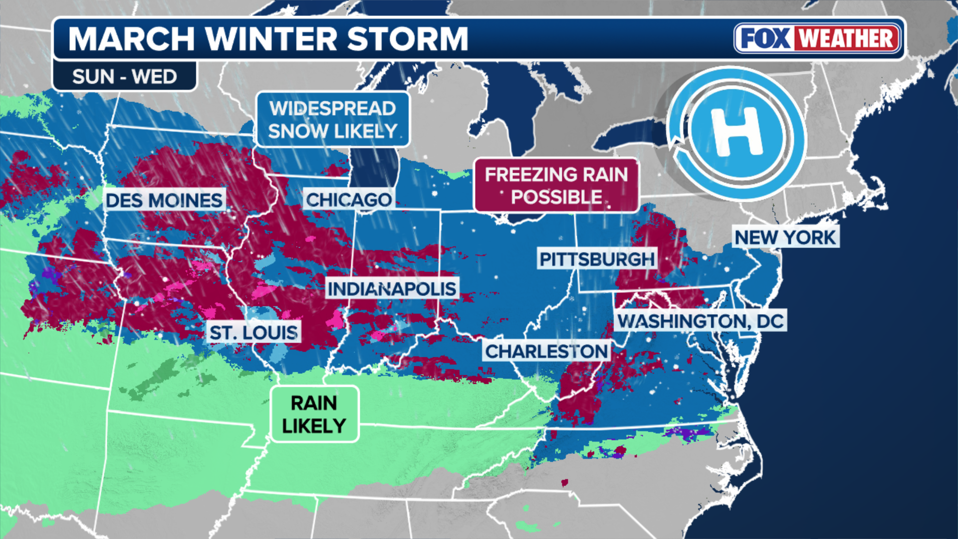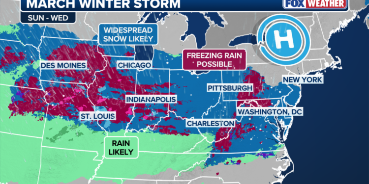 Millions of people across 25 states in the winter-weary Midwest and Northeast face three different winter storms that are set to bring more snow and dangerous ice starting this weekend. The weather setup of each storm is different, reflecting an ongoing battle between lingering cold air digging south from Canada and warmer air from the Gulf being pulled north, as the calendar flips to March.