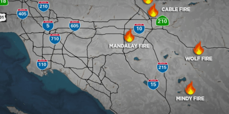 Crews appeared to be getting the upper hand on the majority of the fires Monday morning, with the Wolf Fire burning in Banning continuing to be one of the most active.
