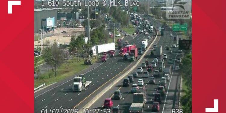 HOUSTON — Drivers are facing major delays after a complete roadway closure shut down westbound lanes of the 610 South Loop at Martin Luther King Jr. Boulevard, according to Houston TranStar.