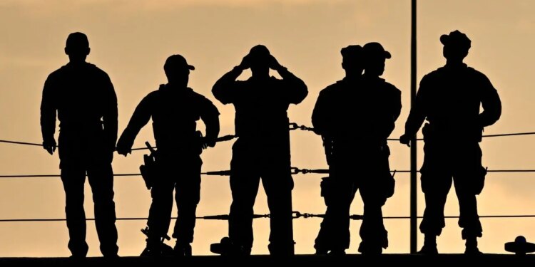 U.S. military personnel stand aboard the Wasp-class amphibious assault ship USS Iwo Jima while docked at Rafael Cordero Santiago Port of the Americas in Ponce, Puerto Rico, on Dec. 16, 2025. (Miguel J. Rodriguez Carrillo / AFP via Getty Images)