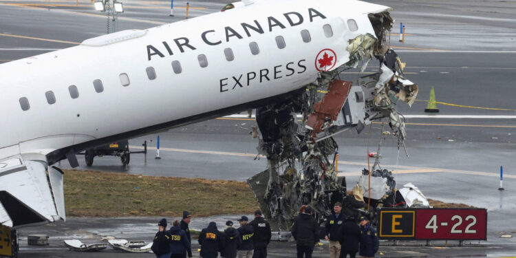 The crash occurred around 11:45 p.m. on Sunday when an Air Canada regional jet arriving from Montreal struck an airport fire truck traveling across the runway to respond to a separate incident aboard another plane involving a concerning odor.