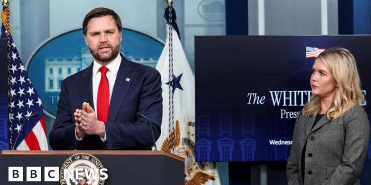 At a White House briefing on Wednesday afternoon, Vice-President JD Vance made a rare appearance alongside Press Secretary Karoline Leavitt and accused the Democrats of playing political games.