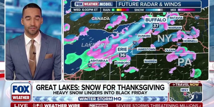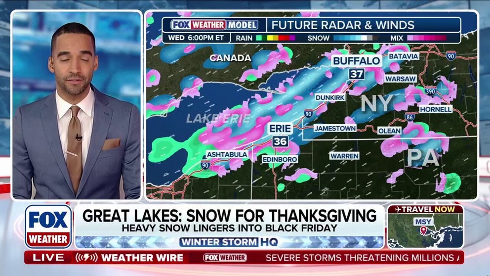 Thanksgiving travel could be snarled across the Great Lakes Snowbelts, as the FOX Forecast Center tracks what it expects to be the most significant lake-effect snow event of the season thus far beginning Wednesday and lasting through Thanksgiving Day and into Black Friday.