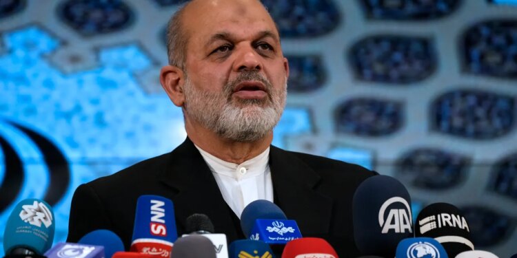 Iran’s Interior Minister Ahmad Vahidi briefs the media on elections in Tehran, Iran, March 4, 2024. Argentina sought the arrest of Vahidi on April 23, 2024, over his alleged involvement in the deadly 1994 bombing of Buenos Aires Jewish community center. (Vahid Salemi/AP)