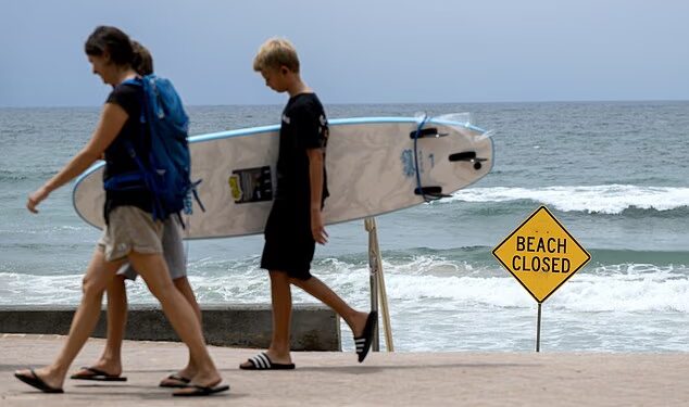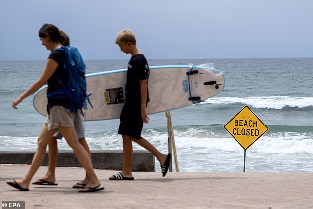 As four shark attacks devastate Australia in just 48 hours, a scientist has revealed what could be behind the spate of incidents. Pictured: Pedestrians walk by North Steyne Beach following a shark attack
