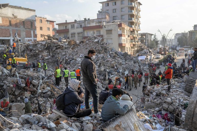 The earthquake destruction in Hatay was immense. People are shown searching through the rubble of collapsed buildings during rescue operations in Hatay on February 12, 2023 [Bulent Kilic/AFP]