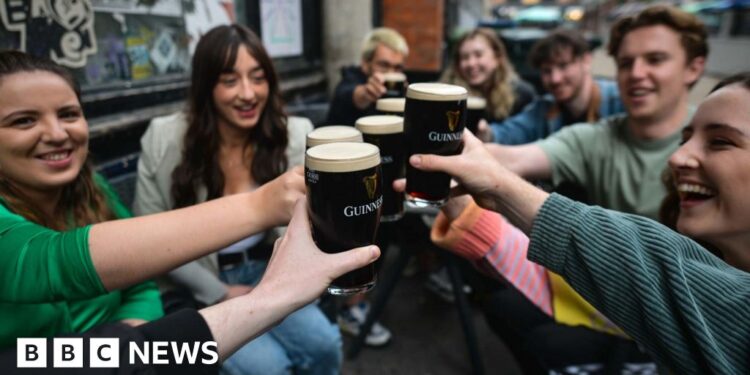 Bloomberg via Getty ImagesThe BBC asked the Irish government why it had postponed the compulsory introduction of the new alcohol warning labels until 2028. It said the decision to defer was made following concerns raised about the impact of their implementation in the current global trading environment.