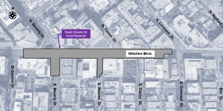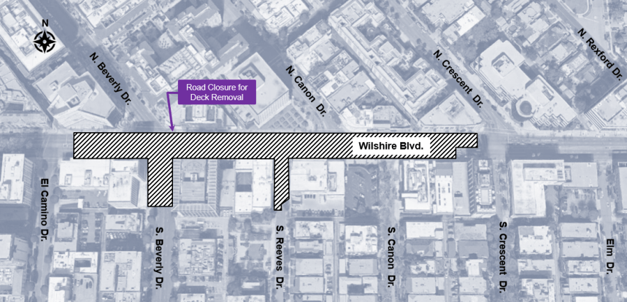 The full closure between El Camino Drive and Crescent Drive will run from March 17 to April 7 to allow crews to complete deck removal and roadway restoration for the Wilshire/Rodeo Station, which is currently under construction.