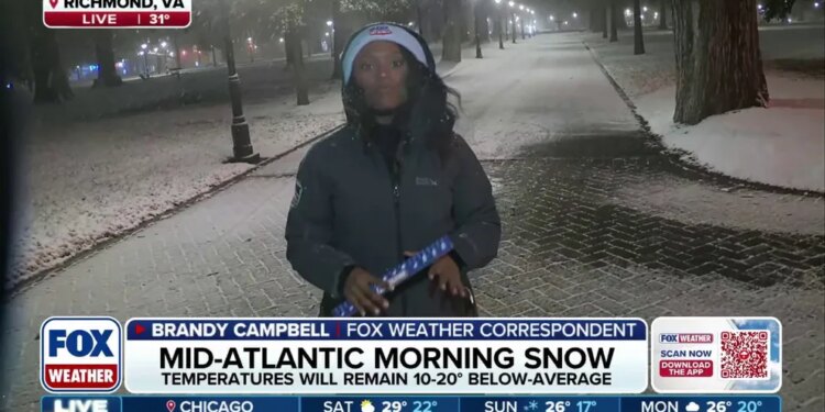 SAY IT AIN’T SNOW ❄️: Millions across the Mid-Atlantic are seeing their first snow of the season this morning as snow begins to accumulate in Richmond, Virginia. FOX Weather reports LIVE from Richmond, Virginia and Washington D.C. with the latest #snow #winter #foxweather pic.twitter.com/6RFG31QGfD