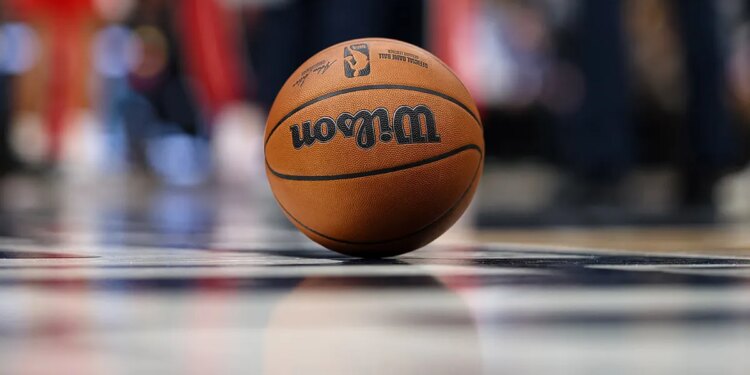 A general view of a Wilson basketball on the court during the second half of the game between the Washington Wizards and the Philadelphia 76ers at Capital One Arena Oct. 28, 2025. (Scott Taetsch/Getty Images)