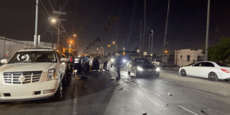 Video from the scene posted to the Citizen App shows the immediate aftermath of the collision, with more than a dozen bystanders rushing to the crash site to try and extricate the male victim, although they were unsuccessful.