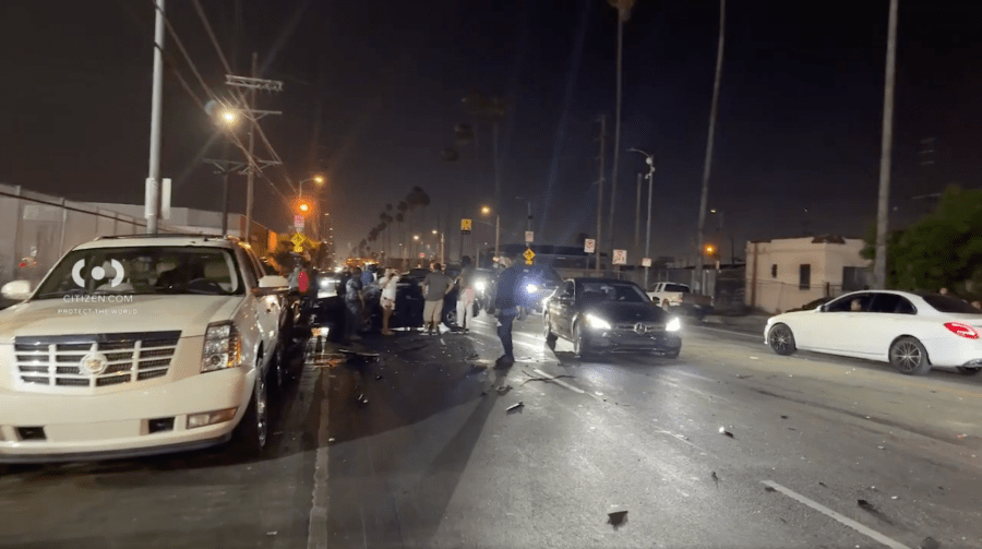 According to the Los Angeles Police Department, the collision occurred around 9:15 p.m. as the Porsche was driving southbound on Figueroa Street at 91st Street and the second vehicle, which appears to be a Honda sedan, northbound on Figueroa.