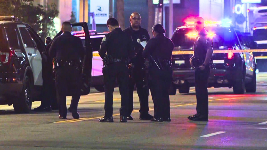 Police respond to a deadly hit-and-run crash in Hollywood on June 29, 2025. (KTLA)