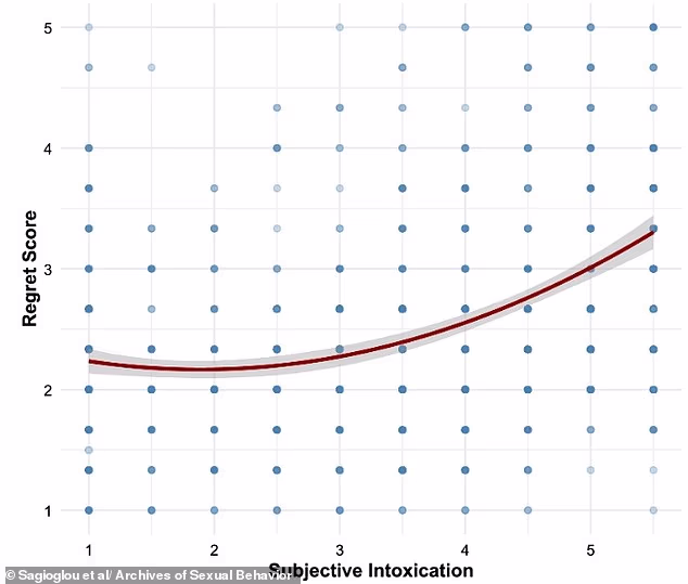 The researchers found a little bit of alcohol didn’t cause much regret, but getting very drunk caused a huge spike in regret for both men and women