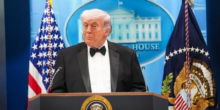 President Donald Trump speaks during a press conference in the Brady Briefing Room of the White House in Washington, D.C., on April 25, 2026, following the cancellation of the annual White House Correspondents Association Dinner due to a possible shooting. (Nathan Howard/Getty Images)