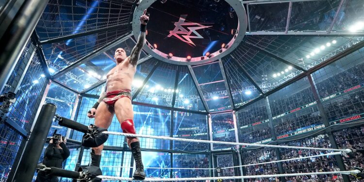 Randy Orton celebrates his win during WWE Elimination Chamber at the United Center on Feb. 28, 2026 in Chicago, Illinois. (Georgiana Dallas/WWE via Getty Images)