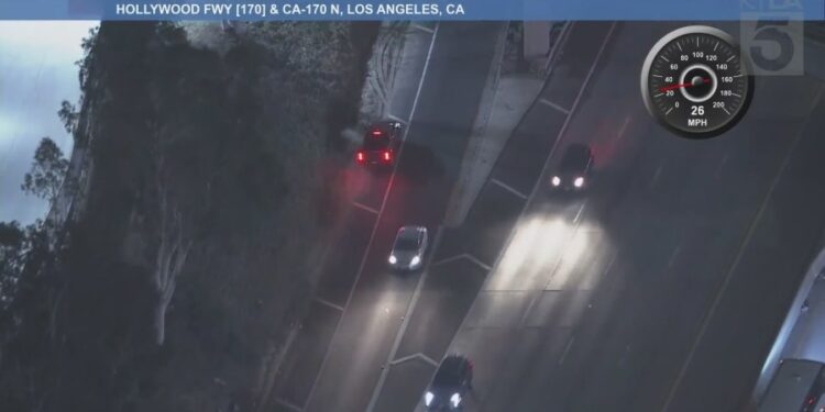 L.A. police were tracking a pursuit suspect who was driving the wrong way on several SoCal freeways on April 23, 2025. (KTLA)