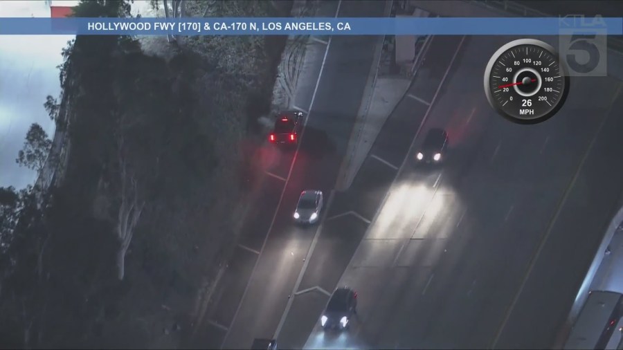 Sky5 was over the scene as the suspect started driving without headlights the wrong way on the shoulder of the freeway before getting off the freeway onto Laurel Canyon Boulevard.