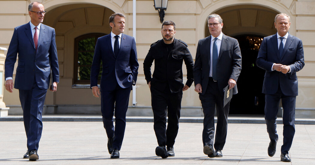 The back and forth between Mr. Zelensky and Mr. Putin came after the leaders of France, Britain, Germany and Poland visited Kyiv and announced a Monday deadline for Russia to accept a 30-day cease-fire or face additional sanctions. The European leaders, who spoke by phone from Kyiv on Saturday with President Trump, said that the United States would also impose sanctions on Russia if Mr. Putin did not agreed to a truce.